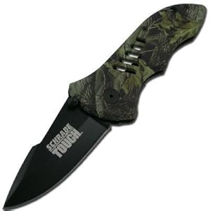 Product Description : Features: 4 1/2" closed. 3" Teflon coated blade. Double sided thumb stud. Blade material: 440C stainless steel. Camouflage coated suregrip handle. Includes pocket clip. Made in China.