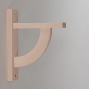 Product Description : Like their cousin the Countertop Corbel by Tyler Morris Woodworking, our wood shelf brackets are simple and strong, yet more economical. We build them in our 4-person shop in Fort Collins, Colorado. We use only the finest solid maple, solid cherry and solid oak for our shelf brackets. Plus, they are joined with high quality glue and screws. They are rated at 200 pounds per bracket. Our shelf brackets are meticulously sanded and all edges have been neatly rounded over. They are in stock and ready for you to stain and finish. The design allows for easy installation, just screw to wall and plug. We include screws, plugs, and complete instructions. Attaching to drywall only? No problem, see our drywall installation kits. An Important Design Consideration... Our shelf brackets will extend above the bottom of your shelf. Your shelf will butt against this extended portion and rest 3/4" from your wall. If you must place your shelf flush with your wall, you may cut a 3/4" deep X 2" wide notch in your shelf or consider using our corbels instead. The shelf bracket's right angle joint is glued and screwed with two #10 X 1 1/2" long wood screws. The shelf bracket's vertical member is 3/4" thick X 2" wide. The shelf bracket's horizontal member is 3/4" thick X 1 1/2" wide. The shelf bracket's brace is assembled with two #10 X 1 1/2" long wood screws also. Our straight, convex and concave braces are 3/4" thick X 1 1/2" wide.