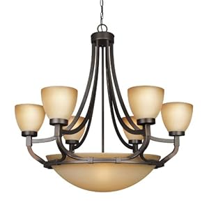 Category: Tools & Home Improvement Vendor: Bronze finish Burnt-etched glass Takes nine 100 watt bulbs (not included) 35-inch width by 33-3/4-inch height 6' chain and 10' Product Description : From the ManufacturerSimple yet elegant, the transitional and clear lines of the Wayman collection will enhance your room's style and d