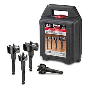 Product Description : From the ManufacturerWoodOwl's Self-Feed Wood Boring Bits are designed with precise, hardened cutting edges that hold up cut after cut. Combined with an aggessive threaded lead screw that helps draw the bit into the work, the WoodOwl Self-Feed Bit offers maximum cutting ability with minimum fatigue. The 4-piece kit includes 1-3/8", 1-1/2", 2-1/8", 2-9/16" diameter bits. Product Description : WoodOwl's Self-Feed Wood Boring Bits are designed with precise, hardened cutting edges that hold up cut after cut. Combined with an aggessive threaded lead screw that helps draw the bit into the work, the WoodOwl Self-Feed Bit offers maximum cutting ability with minimum fatigue. The 4-piece kit includes 1-3/8", 1-1/2", 2-1/8", 2-9/16"-Diameter bits. These WoodOwl bits feature up to 50 percent wider cutting tooth surface than competitive bits for extra stability and truer holes. Chamfered back edge for easy extraction, especially with wet wood. Machined lead screw with burr-free threads delivers a consistent feed rate. Kit includes extension bar.