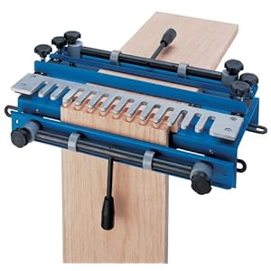 Product Description : From the ManufacturerOur Dovetail Jig with unique cam-action clamping system quickly locks two boards in position to cut both tails and pins with one pass of the router. It easily handles stock frm 1/2-Inch to 1-1/4-Inch thick in widths up to 12-Inch. Product Description : Make perfect half-blind dovetail joints. Designed for ease of use for one-time set-ups as wall as for production runs, the quick action clamping system handles material from 5/16" to 1-1/4" thick and widths up to 12". Includes 1/2" template. Requires a 7/16" guide bushing and a 1/2" 14 degree dovetail bit with 1/4" shank (see C1069 on page 338).