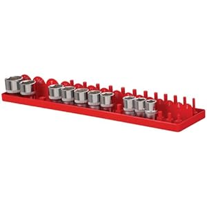 Product Description : From the ManufacturerThis plastic socket holder tray keeps all of your regular and deep well 1/4-Inch, 3/8-Inch and 1/2-Inch sockets neatly organized. The 3/8-Inch tray holds 13 SAE sockets 1/4-Inch - 1-1/8-Inch. Square mounts hold sockets even when hanging in vertical position.