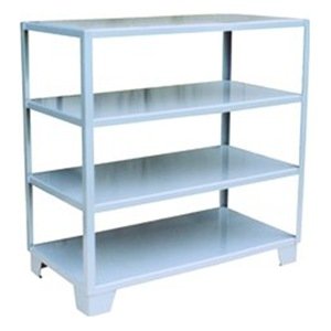 Category: Tools & Home Improvement Vendor: Shelving Unit Product Description : All welded construction. Durable 12 gauge steel shelves, 3/16" thick angle corners with 12 gauge feet. 1-1/2" shelf lips down - flush . Clearance between shelves - 13". Overall height - 65".
