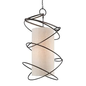 Vendor: Black finish with accents Linen shade Requires six (6) 60-watt candelabra base bulbs (not included) 23 inches wide x 47 inches