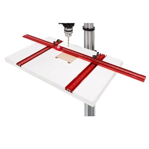 Product Description : Woodpeckers Drill Press Table features a generous 16" x 23" x 1" surface constructed of a MDF core covered with Formica Micro-Dot laminate - a unique texture which is a grid of small dimples that collect saw dust, allowing the surface to better grip the work piece under pressure. Removable insert minimizes tear-out when drilling through material without the need of a backer board and the insert can easily be replaced with any 1/2" thick material. Two double-wide T-tracks are embedded and bolted in place from underneath to virtually eliminate the possibility of pulling the track out when using optional deluxe hold down clamps (not included). Each T-track is permanently laser engraved with an easy to read, high contrast scale clearly indicating fence position. Once calibrated to your drill press, no further adjustment is needed. The 36" fence uses the same double-wide track as the table to give you more stop and accessory mounting options. The fence comes with a simple L stop, and optional flip stops (not included) can be added for increased versatility. Mounting hardware is included.