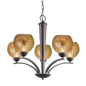 Product Description : From the ManufacturerWith a variation of beautiful art glass combined with clean lines and a transitional design, the North Bay collection offers your room the enhanced style and decor it is looking for. This collection includes a 3-light chandelier, this 5-light chandelier, a 1-light mini-pendant, a 1-light wall sconce, and a 3-light bath bar. Product Description : Bring your home a touch of elegance with North Bay Chandelier by Woodbridge Lighting. Artfully crafted in Mirror Mosaic and Metallic Bronze finish this piece is the perfect contemporary style addition to any room. Item Dimensions (inches): 23.5Hx26W(D) Wattage: 60W Number of bulbs: 5 Wire Length (inches): 120 Chain length (inches): 72
