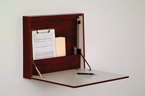 Product Description : Color: Dark Red MahoganyFinish:Dark Red Mahogany Perfect for doctor's offices, patient rooms, libraries, mailrooms -- anywhere you need convenient, compact desk space. Projects only 4' from wall when closed Can be positioned for sit-down or stand-up use Made of solid oak frame and trim with beige laminate back and desk surfaces Includes dual pen holder and large pocket for folders, charts, envelopes and supplies Deluxe chrome braking sliding hinges for soft opening Magnetic closure 21'W x 17'D writing surface Mounting hardware included