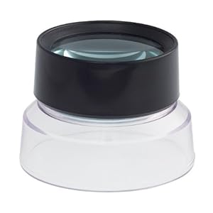 Product Description : From the ManufacturerThis 3-Inch, 3 power Desk Magnifier eliminates eye strain when viewing fine detail and small print. Clear base allows plenty of ambient light to enter viewing area. Base measures 4-1/4-Inch.