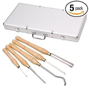 Product Description : From the ManufacturerFor larger bowl turning and hollowing projects, this set does it all. Massive high speed steel blades and long ash handles provide stability and control for slower turning. This set includes a 1-Inch roughing gouge, 3/8-Inch straight chisel, gooseneck hollowing tool, 3/8-Inch spindle gouge,1/8-Inch parting tool and fitted aluminum case.