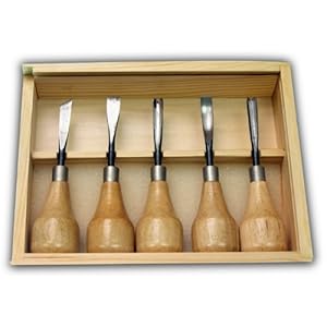 Product Description : This set of wood carving tools is designed with the beginning carver in mind. It makes a great gift for someone special or for an aspiring woodcarver. The set is nestled in a natural wood box with a sliding cover. Inside, the 5 tools rest on a grooved divider with a foam pad beneath the handles. The blades are approximately 2-1/4 inches long and the tools measure approximately 5 inches long overall. Blades measure from 5/16" to 3/8" wide at the tip. Each tool has a laquered, light wood, palm style handle with one flat side that is very comfortable to hold and is secure for gripping. Each tool blade is different and the set provides all the basic shapes that are necessary to complete a carving project. Overall the wood box measures 6" X 8" and is 3/4" high. For hundreds more craft, art and hobby products be sure to visit our National Artcraft Storefront. We have the creative component you need.