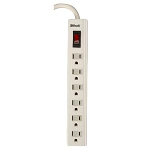 Product Description : Woods 041403 6-Outlet Power Strip 6-Foot Cord . Ideal solution for adding more outlet when you want them. 6-Outlet, Cord Length is 6-Feet. Outlet direction is inline. Sliding Safety Covers - Slide to open/close; protects users from accidental contact and keeps dust and debris away from unused outlets. Power strip adds more outlets when you need to convert one into many. Comes equipped with a lighted power switch to indicate power is flowing. Woods is Coleman Cable Company.